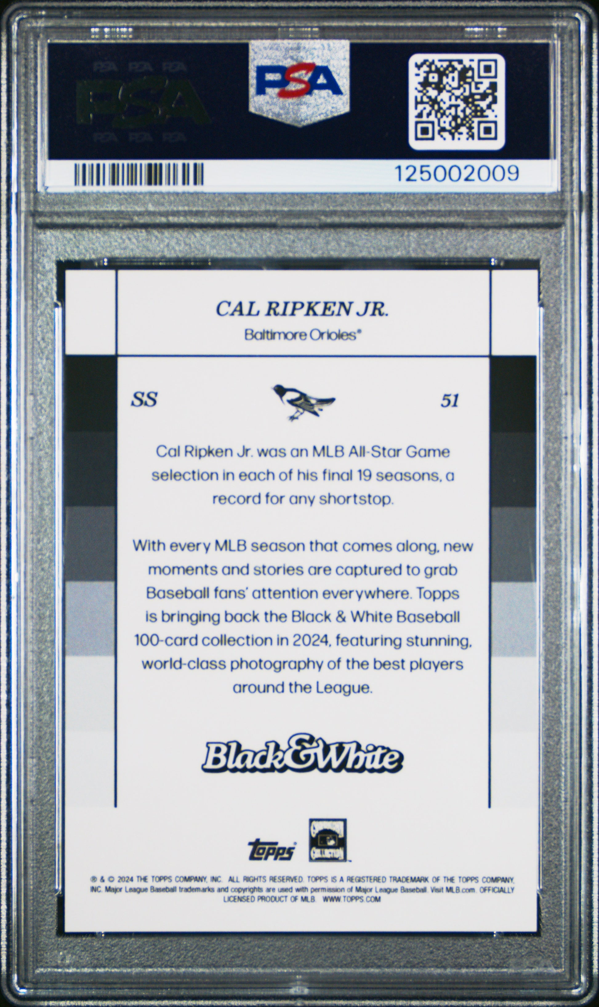 Cal Ripken Jr. Orioles 2024 Topps Black & White Purple #51 Card /25 PSA 10