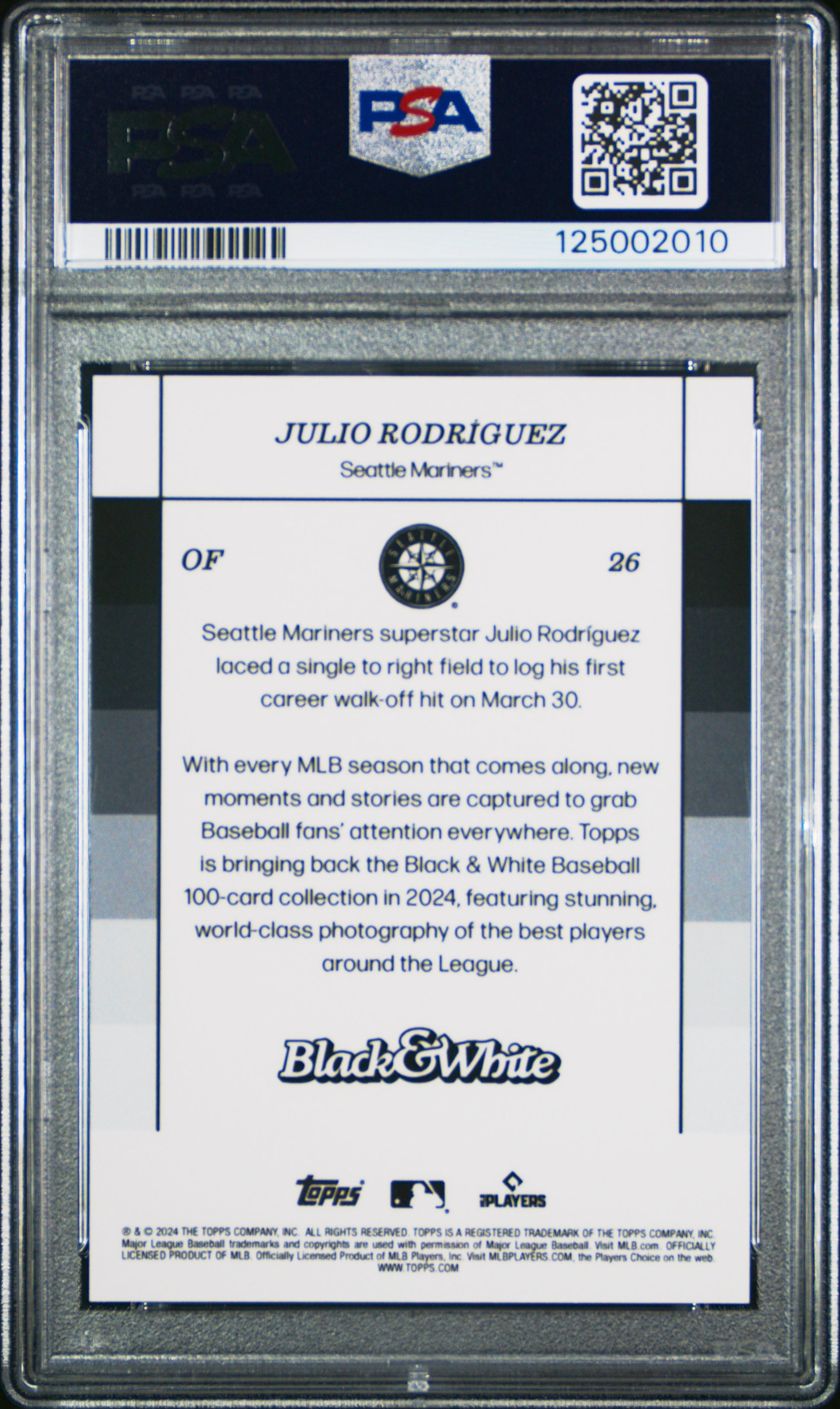 Julio Rodriguez Mariners 2024 Topps Black & White Red #26 Card /10 PSA 10