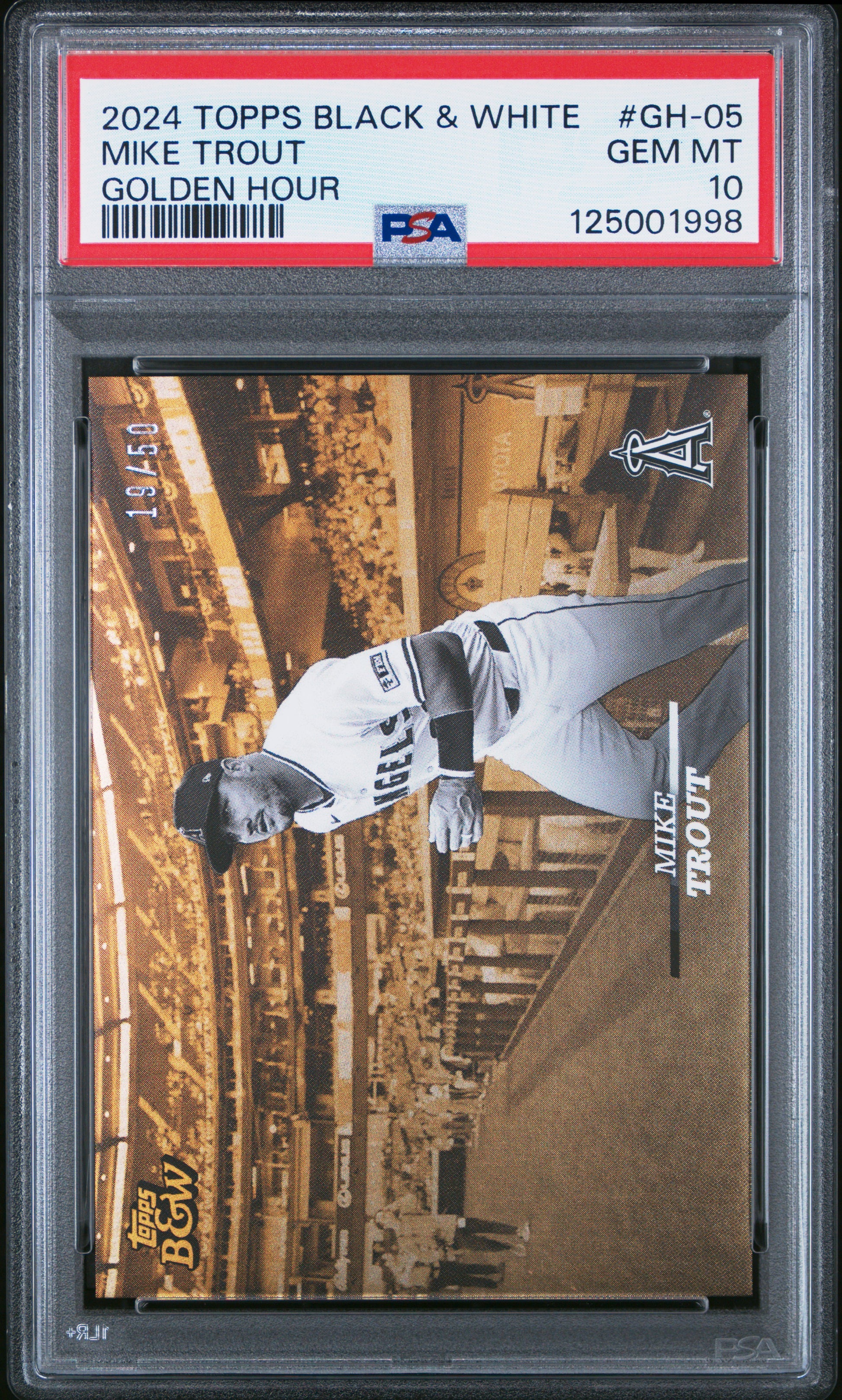 Mike Trout Angels 2024 Topps Black & White Golden Hour Card /50 PSA 10 Gem Mint